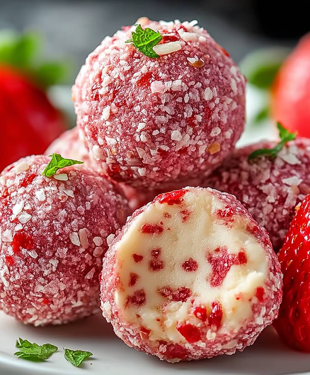 I stumbled upon these delightful Strawberry Cheesecake Protein Balls during a desperate attempt to create a healthy yet indulgent snack. One afternoon, faced with an overflowing bowl of ripe strawberries and a tub of vanilla protein powder, inspiration struck like a lightning bolt. What emerged from my kitchen chaos were these surprisingly joyous, no-bake wonders, instantly brightening my day.