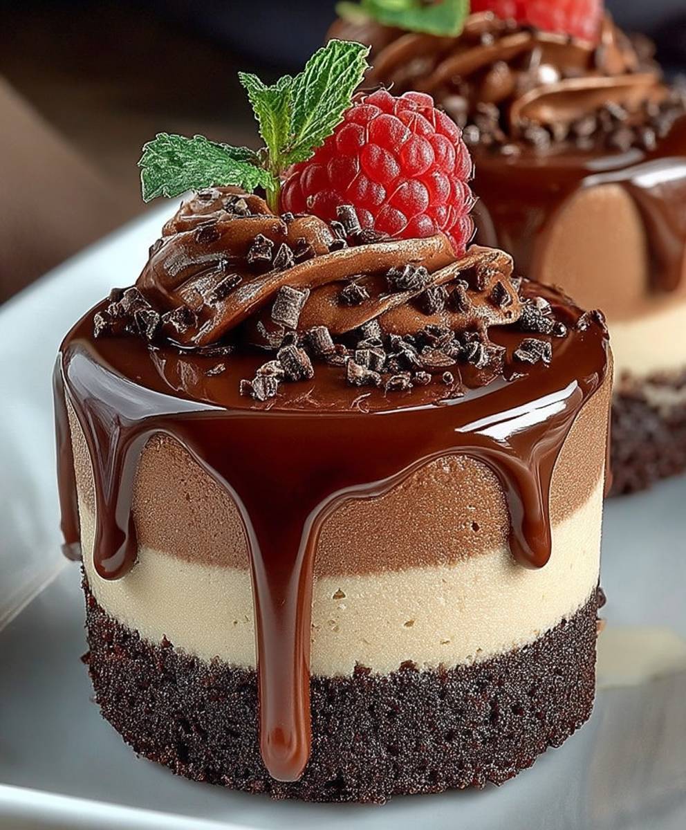 There you have it – the secret to crafting these utterly divine Mini Triple Chocolate Mousse Cakes, a truly rich, decadent, and layered dessert that will have everyone swooning! From the playful dance of three distinct chocolate flavors to their elegant individual presentation, these treats promise to elevate any gathering. Don’t be intimidated by the layers; each step brings you closer to chocolate bliss. So, gather your ingredients, embrace the process, and prepare to impress yourself and your loved ones with this spectacular dessert. Your taste buds are in for an unforgettable journey into chocolate paradise!